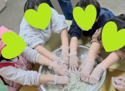 サーターアンダギーを作ります。上手に薄力粉を入れ、混ぜました。
